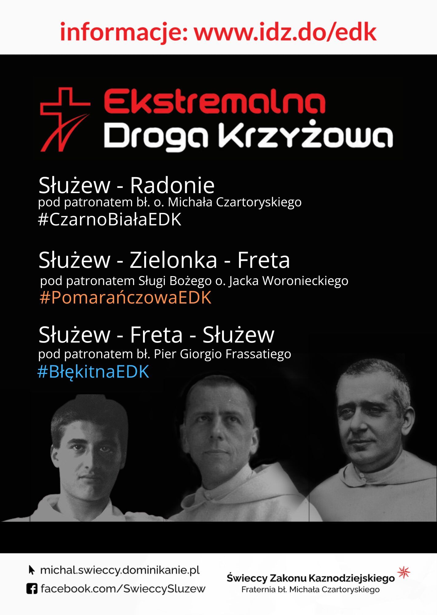 Pod patronatem bł. Michała Czartoryskiego już po raz ósmy odbędzie się trasa #CzarnoBiałaEDK, która zaczyna się w naszym dominikańskim kościele na Służewie, a kończy przy klasztorze mniszek dominikańskich w Radoniach koło Grodziska Mazowieckiego.