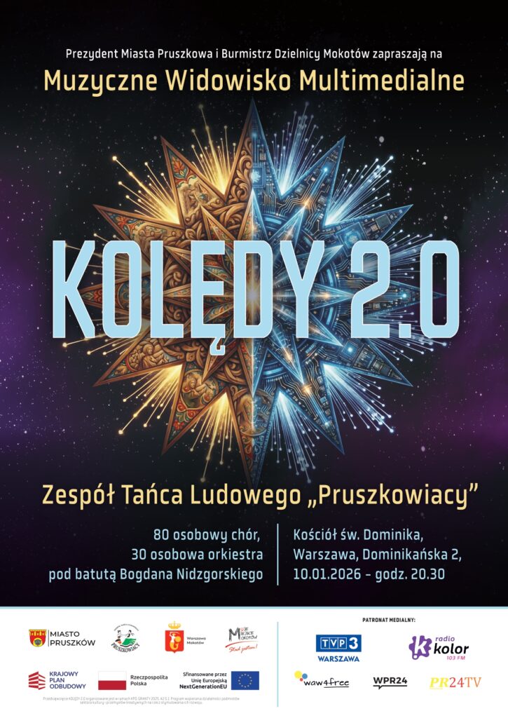 Prezydent Miasta Pruszków oraz Burmistrz Dzielnicy Mokotów m.st. Warszawy zapraszają na wyjątkowe i innowacyjne wydarzenie kulturalne „KOLĘDY 2.0”, które odbędzie się 10 stycznia 2026 roku o godz. 20.30 w naszym kościele.