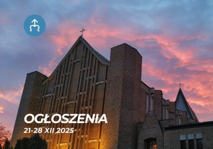 5. W następną niedzielę, 28 grudnia, obchodzimy święto Świętej Rodziny. Tego dnia o godz. 12.30 odprawimy Mszę św. połączoną z odnowieniem przyrzeczeń małżeńskich. Zapraszamy na nią wszystkich małżonków, a szczególnie tych, którzy w mijającym roku świętowali swoje większe i mniejsze jubileusze.