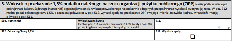 W rubryce dotyczącej 1,5% wpisz KRS: 0000 354 036
