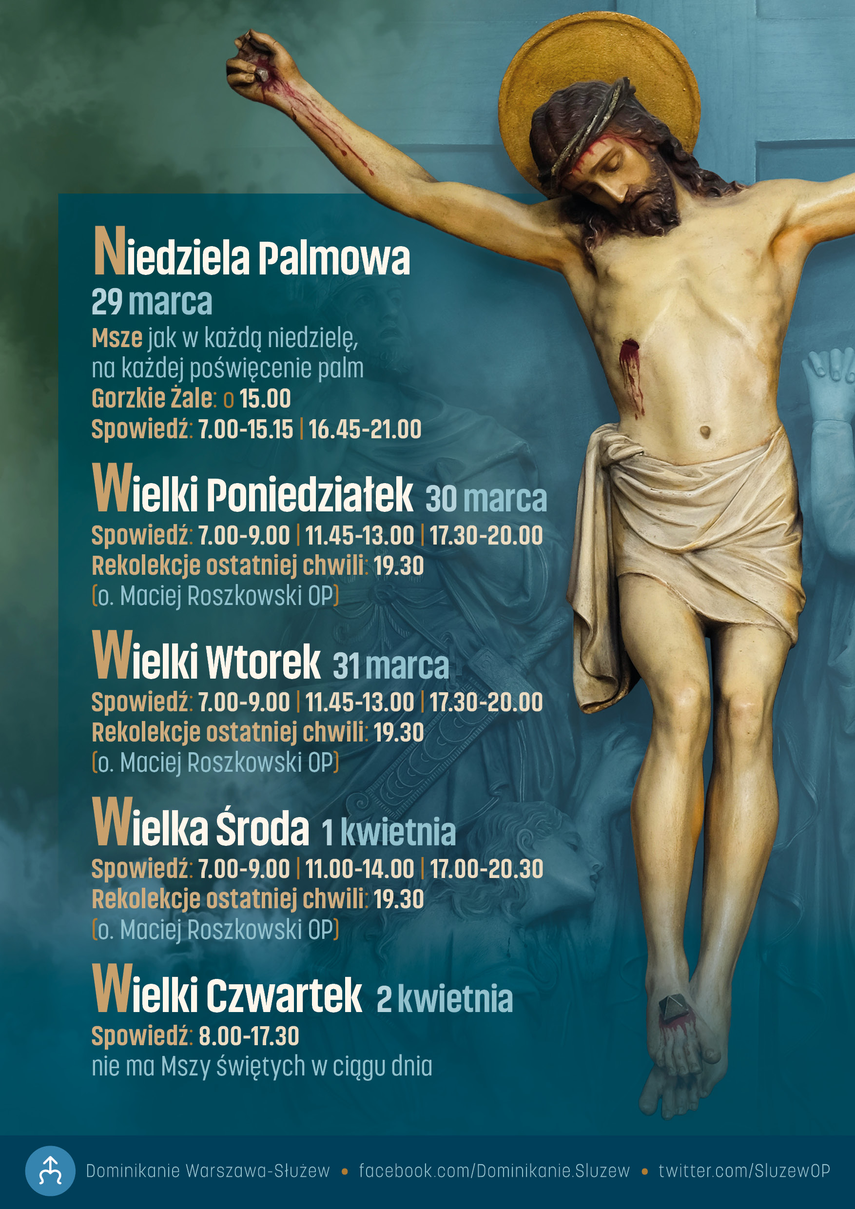 - Niedziela Palmowa, 29 marca 2026 (plik PDF), dyżury w godz. 7.00-15.15 oraz 16.45-21.00
