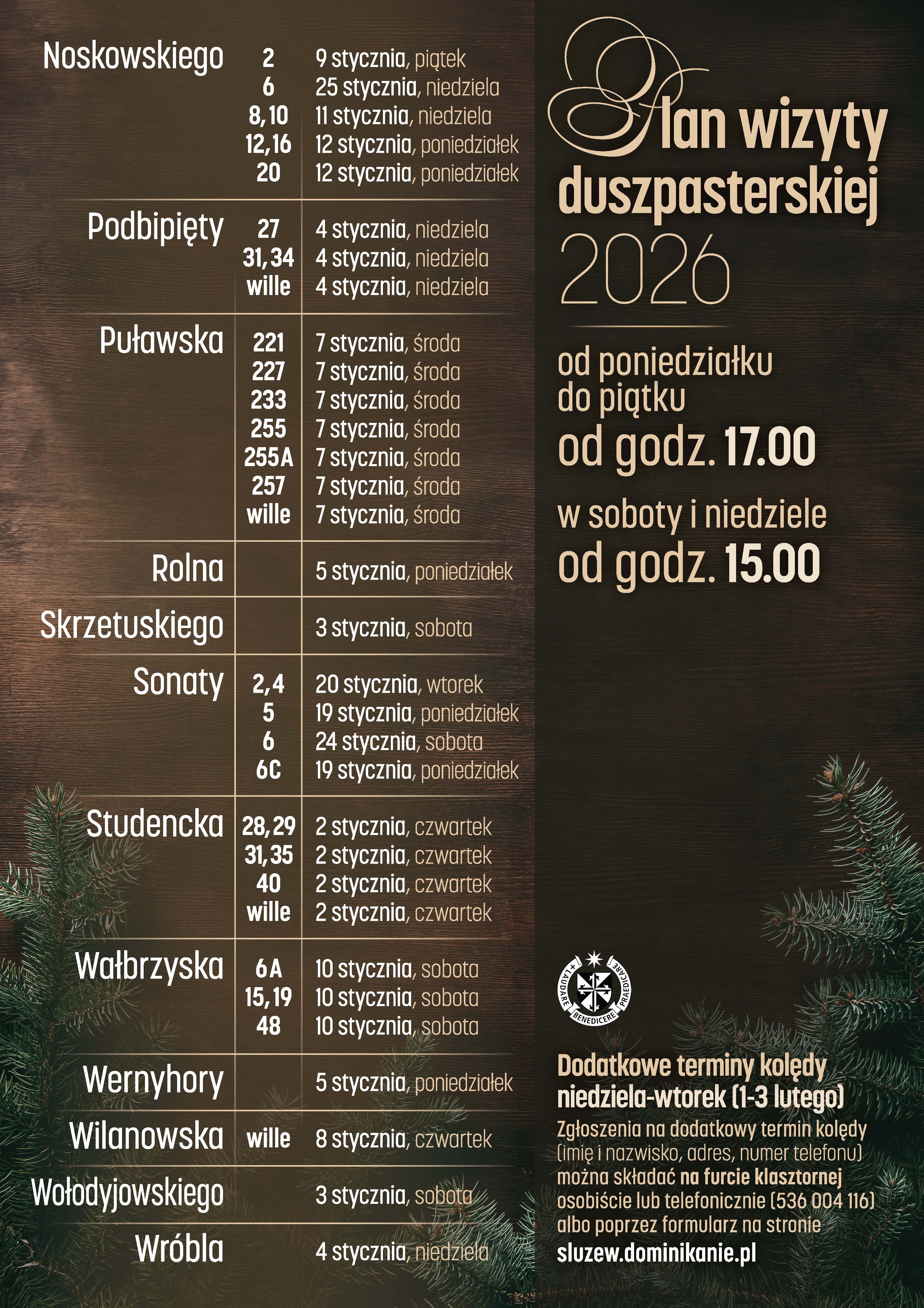 Szczegółowy plan kolędy podany jest na załączonych poniżej plakatach.