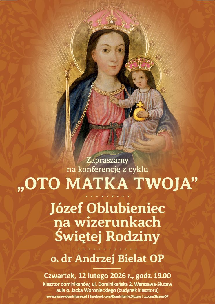 Podczas najbliższego spotkania w dniu 12 lutego 2026 r. gościć będziemy o. dr. Andrzeja Bielata OP, który opowie o wizerunkach świętego Józefa na obrazach Świętej Rodziny. Zapraszamy na godz. 19.00 do auli o. Jacka Woronieckiego (budynek klasztoru).